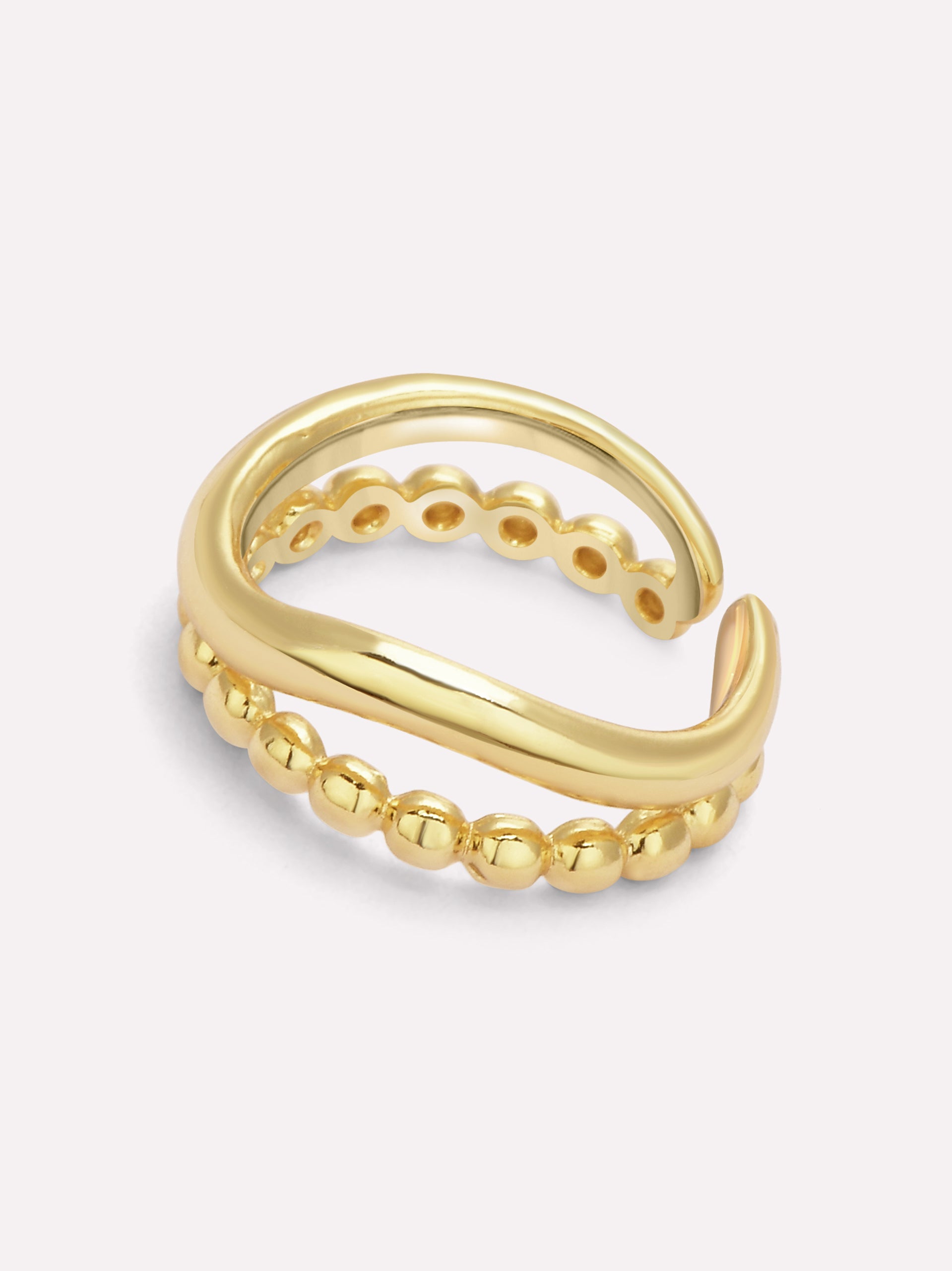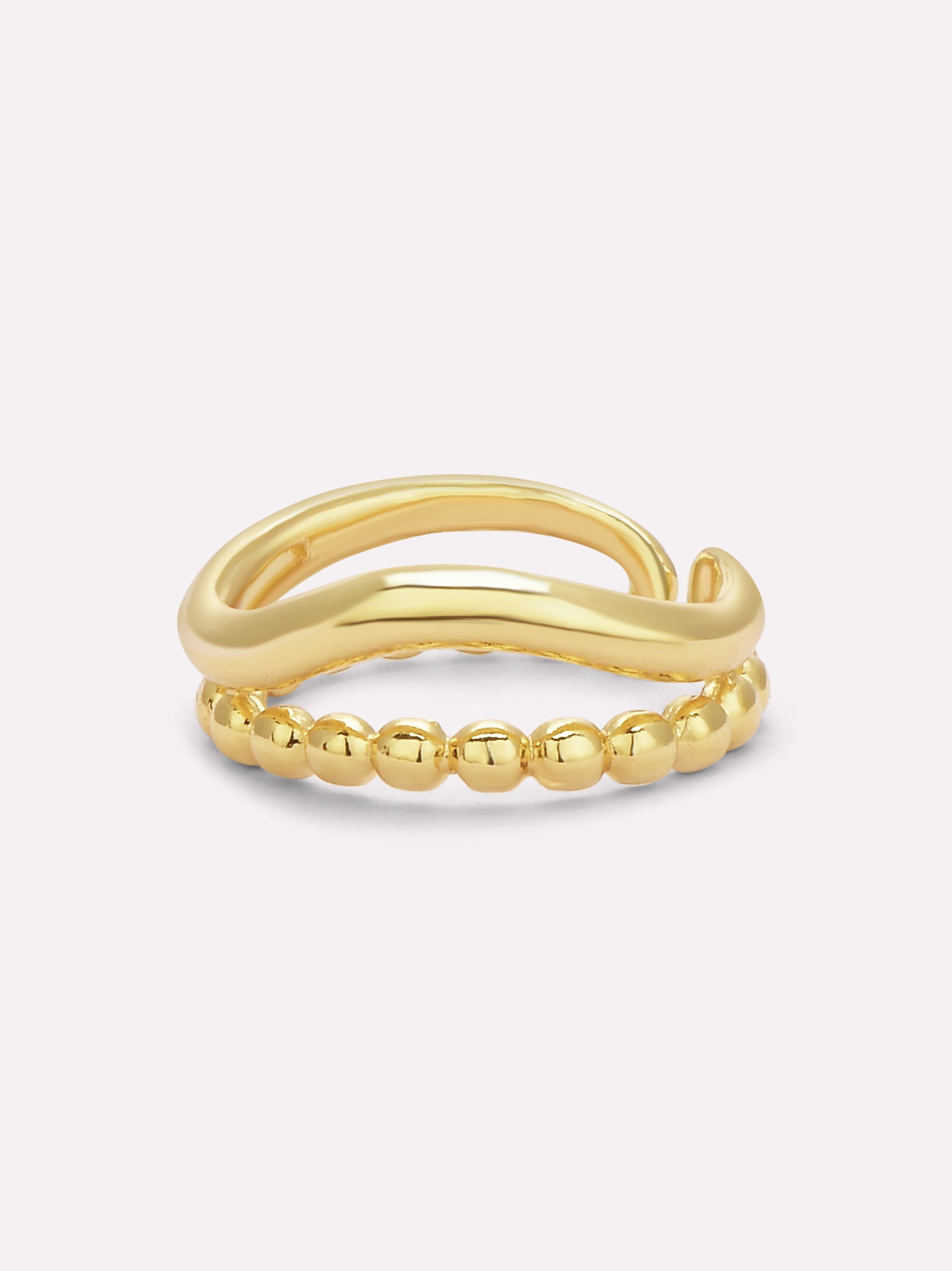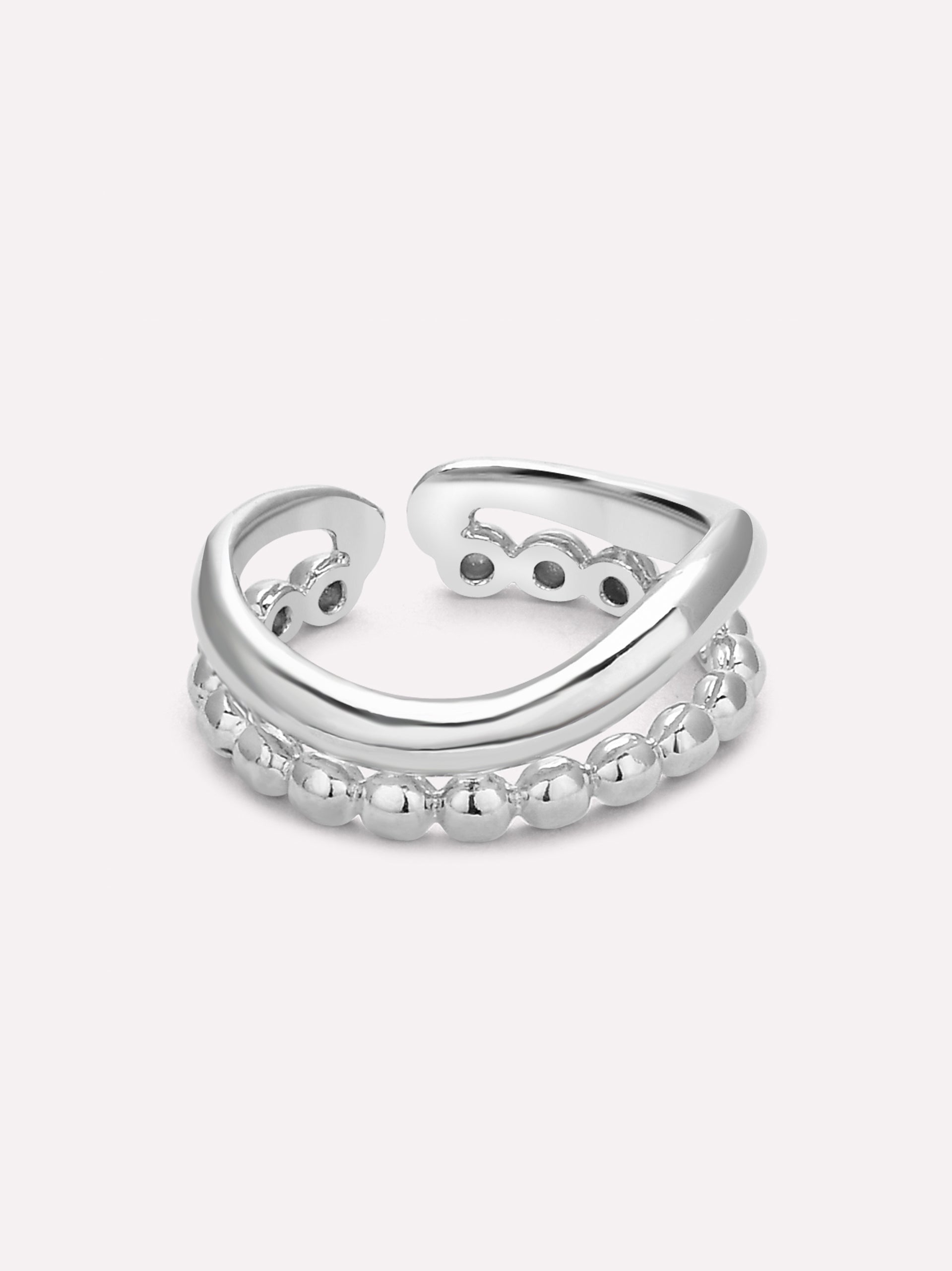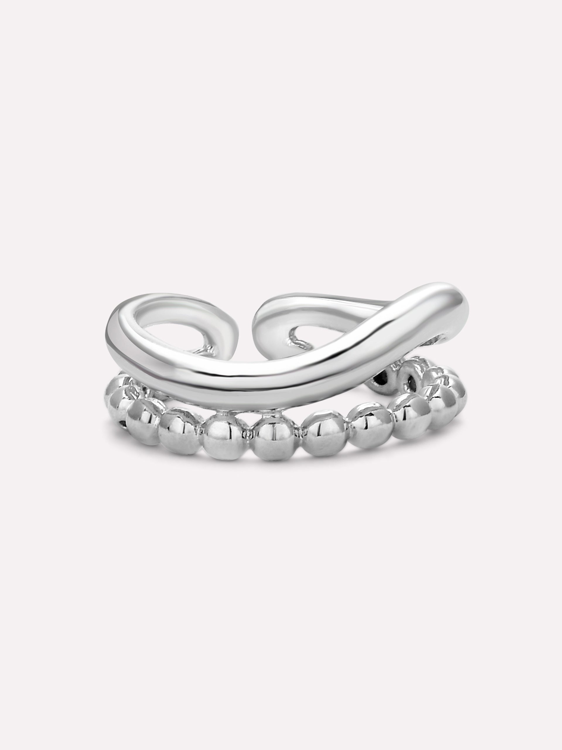 The Serena Beaded Wave Ring is a chic and contemporary statement piece, featuring a unique wavy design paired with delicate beaded detailing. This double-layered ring creates an effortless stacked look, making it a go-to piece for minimal yet stylish accessorizing.