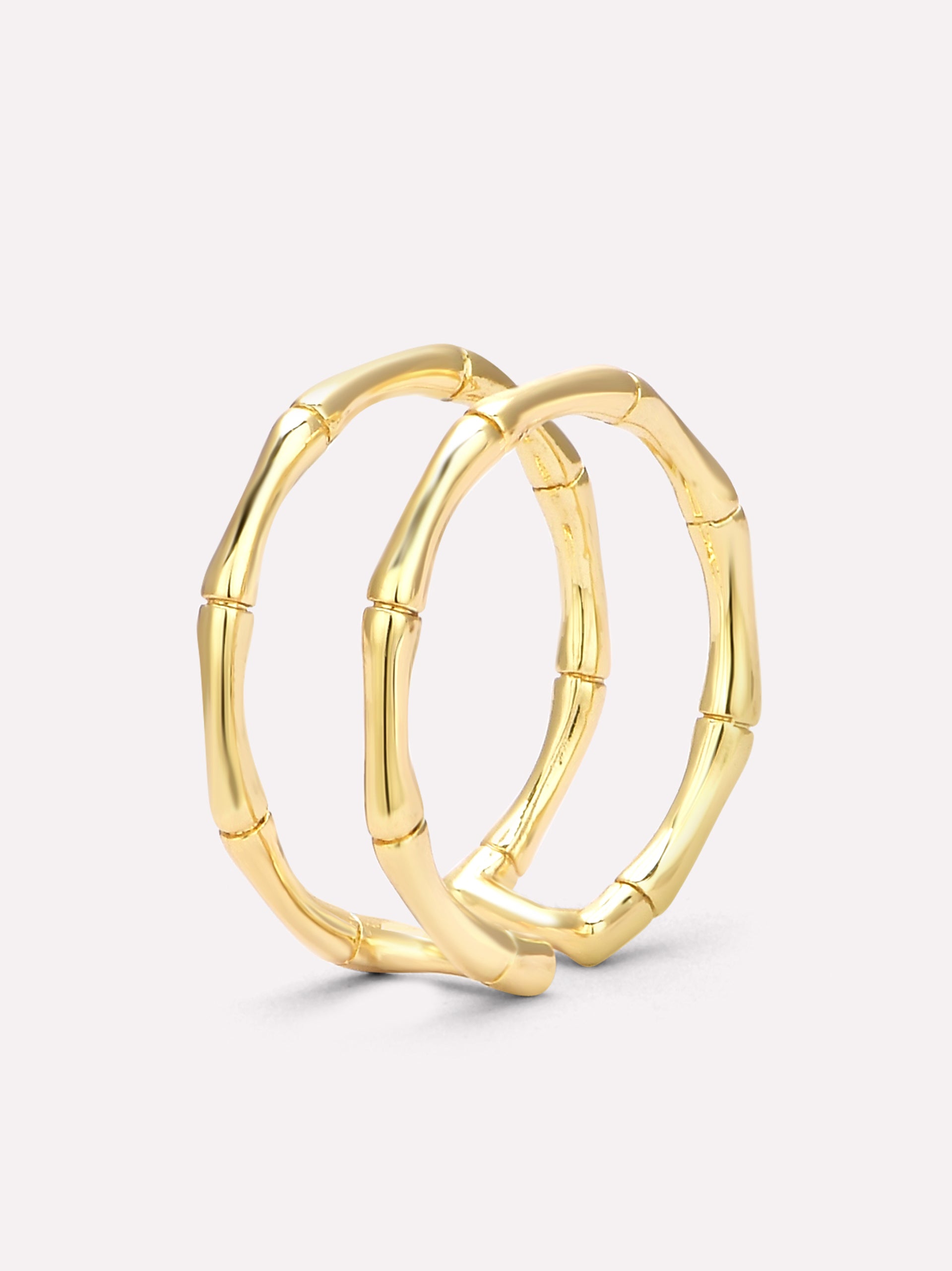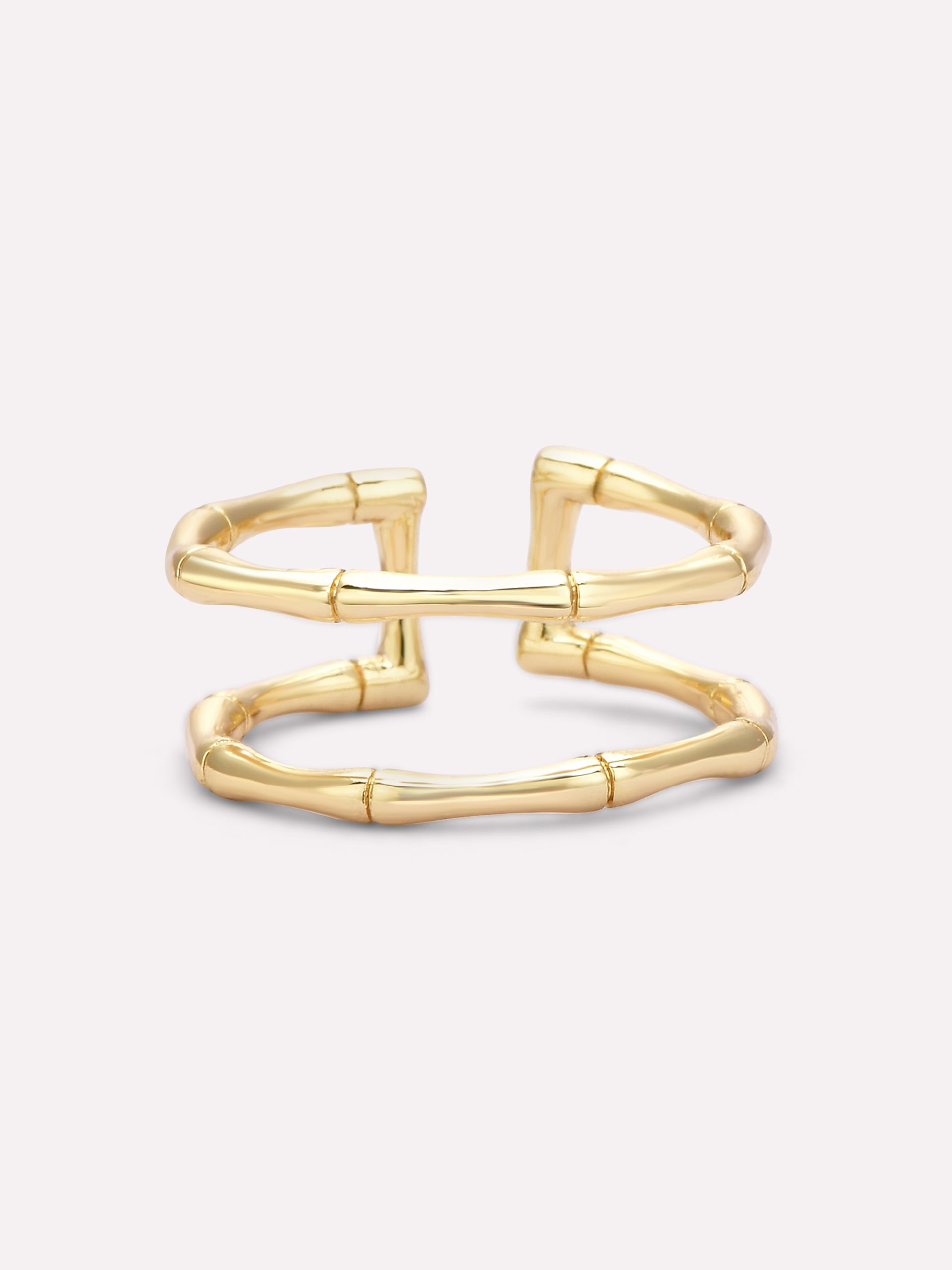 Inspired by nature’s raw beauty, the Zyra Bamboo Layered Ring features a textured, bamboo-inspired double-band design, offering a perfect blend of organic elegance and modern minimalism. Its stacked look creates a layered effect without the need for multiple rings, making it an effortless styling piece.